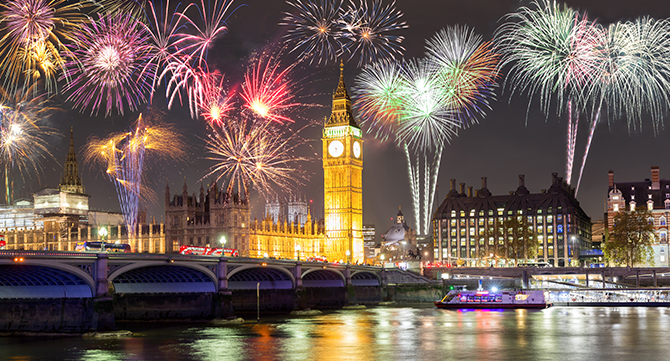 London ist nur eine 1 Stunde und 45 Minuten von Zürich entfernt und ebenfalls eine Top Silvester Destination. Sobald die Mitternacht Glocken des Big Bens läuten, fängt das Spektakel an. Die Tradition will, dass man das Lied „Auld Lang Syne“ singt und sich dann einen Neujahrswunsch ausdenkt. Auch in London hast du die Möglichkeit, Feuerwerke zu betrachten und Spass zu haben.