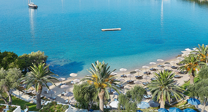 Das 5.5-Sterne Hotel Grecotel Corfu Imperial präsentiert sich in einem stilvollen Ambiente und garantiert Premiumferien der Extraklasse. Die traumhafte Lage auf der Halbinsel Kommeno bietet drei schöne Sandbuchten mit flachabfallenden Stränden.
