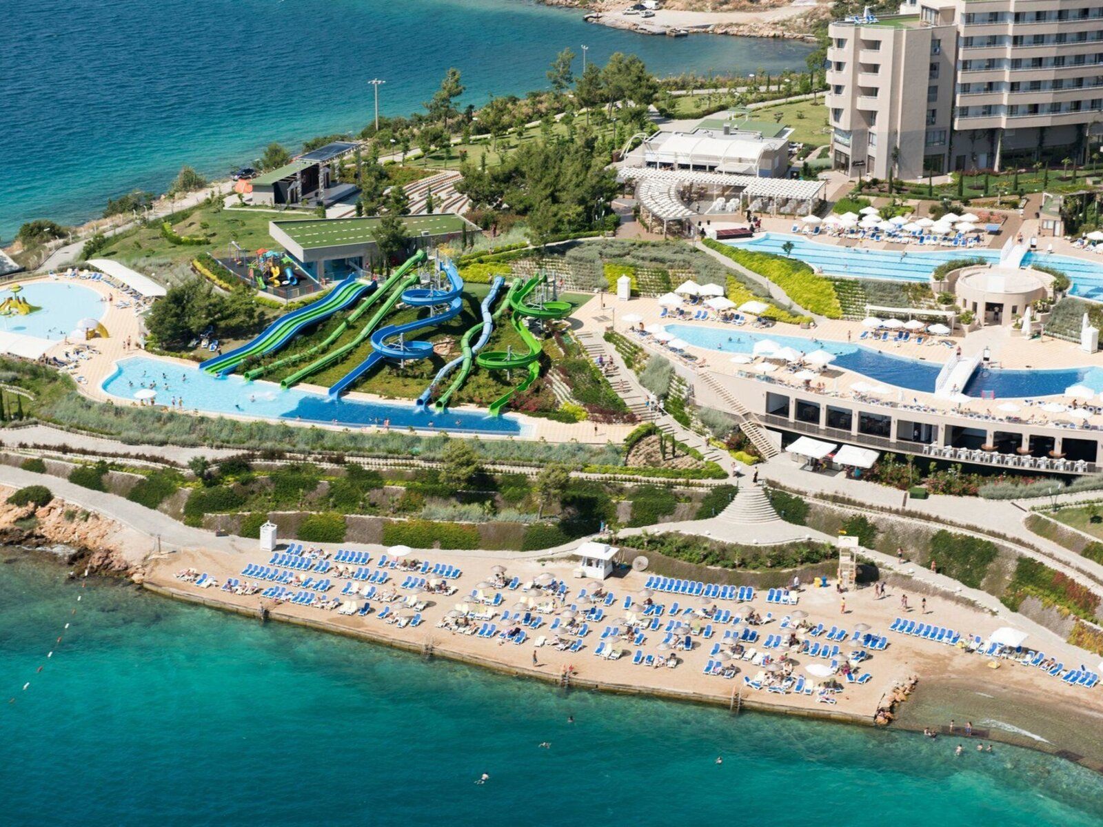 • La Blanche Island Bodrum****: Dieses Hotel liegt in einer abgeschiedenen Gegend am Meer und bietet einen privaten Strandbereich, einen Aussenpool und einen Wasserpark. Die eleganten Zimmer sind klimatisiert und schallisoliert und bieten einen Balkon mit Aussicht. Du kannst rund um die Uhr türkische und internationale Küche geniessen und an verschiedenen Unterhaltungsaktivitäten teilnehmen.