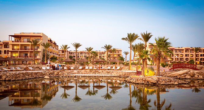 Zwischen Hurghada und Safaga gelegen, ist Makadi Bay ein beliebter Badeort mit flachabfallenden Sandstränden und kristallklarem Wasser. Zudem gibt es einen Golfplatz, einen Aquapark sowie mehrere Restaurants, Cafés und kleine Shops, welche für Abwechslung sorgen.