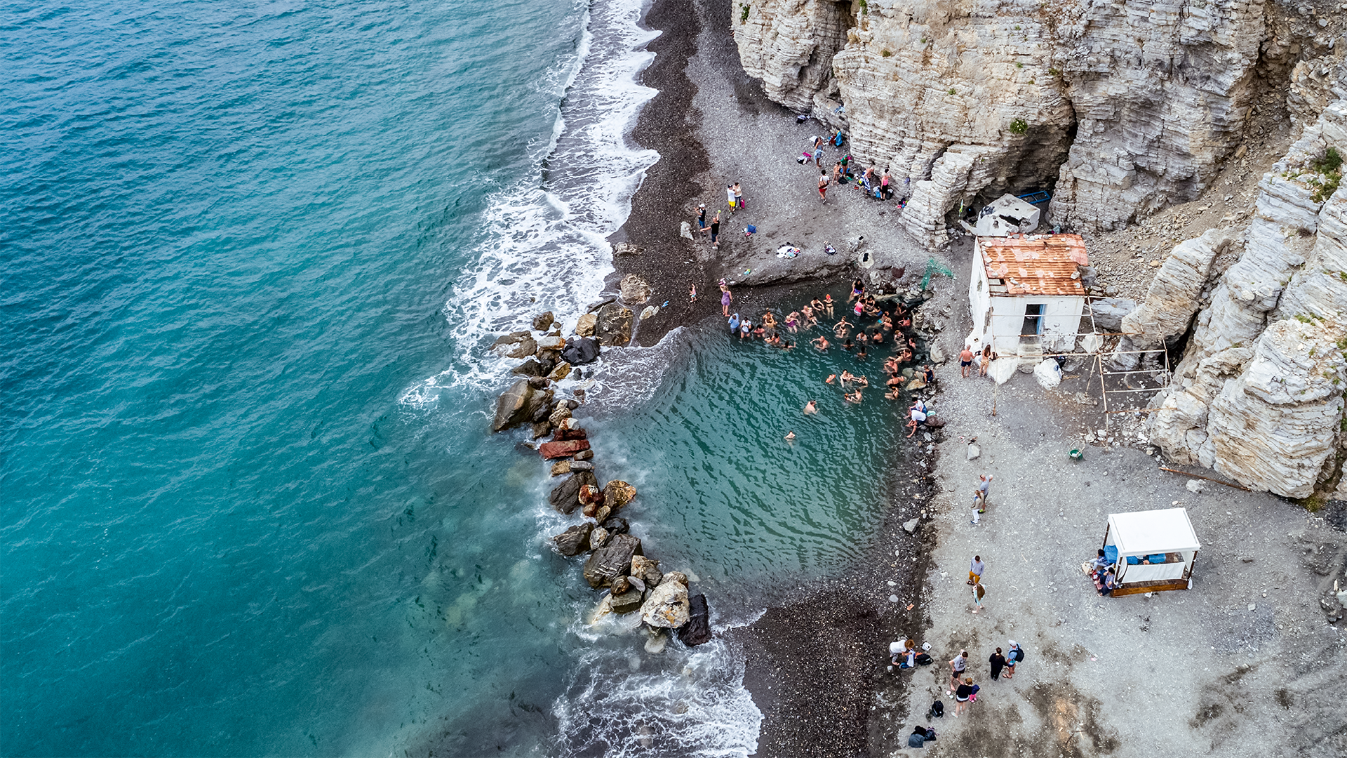 Wie wäre es mit Wellnessen am Strand? Dann los zur Embros Therme. Hier erwartet euch ein ca. 25 m2 grosser Naturpool. Das Meerwasser kühlt das Heilwasser etwas ab, sodass man hier mit 30 bis 40 Grad warmem Wasser rechnen kann, allerdings kann es auch mal heisser werden. Die heilende Wirkung des warmen, wohltuenden Wassers, das reich an Mineralien ist und typischerweise nach Schwefel riecht, ist auch jenseits der Inselgrenzen bekannt.