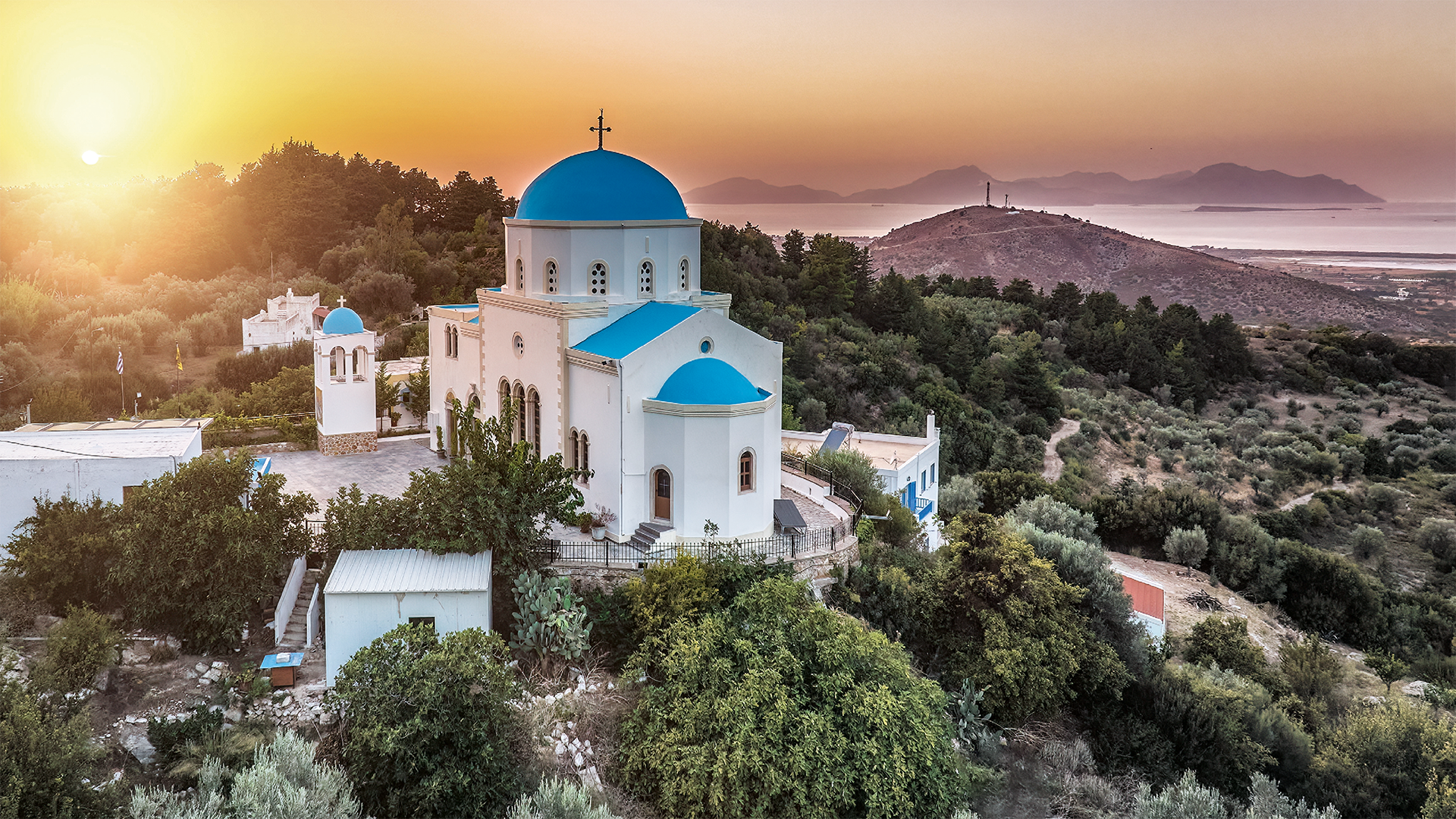 Rund 150 Einwohnende zählt der kleine Ort in der Inselmitte und der Weg hinauf auf 300 Meter über dem Meeresspiegel lohnt sich. Ist man nach einem Spaziergang durch Pinienwälder und Olivenhaine im Ort angekommen, sollte man sich die Zeit nehmen, durch die Gassen zu schlendern und in einer urigen Taverne einzukehren. Viele der Restaurants bieten einen fabelhaften Ausblick auf Kos. Einen Blick wert ist auch die kleine Kirche von Zia, die von innen besichtigt werden kann.