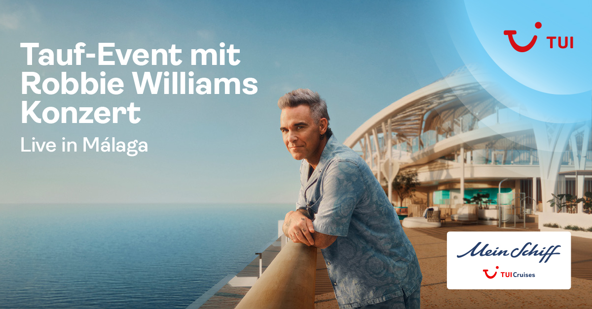 Möchtest du bei einem Event der Superlative dabei sein? Am 9. April 2025 wird die Mein Schiff Relax in Málaga direkt im Hafen der andalusischen Küstenstadt feierlich getauft. Erlebe eine Weltpremiere mit spektakulärer Show und exklusivem Open-Air-Konzert von Robbie Williams. Nutze die Gelegenheit, dieses einmalige Event mit einem Citytrip zu kombinieren. Sichere dir die Teilnahme am spektakulären Tauf-Event in Kombination mit einem Hotelaufenthalt – buchbar exklusiv bei TUI.