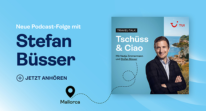 Du brauchst noch mehr Inspiration? Dann hör dir unseren Travelpodcast mit Stefan Büsser an. In der neusten TUI Podcast Folge „Tschüss & Ciao“ erzählt er auf humorvolle Weise von seinen ganz persönlichen Mallorca-Highlights. Warum er sich über den zwielichtigen Ruf der Insel freut, erfährst du hier. Zudem kannst du mit etwas Glück einen TUI-Reisegutschein im Wert von von CHF 200 gewinnen.