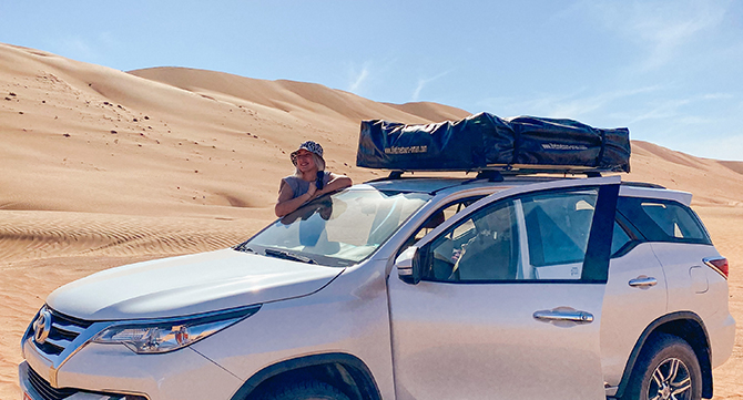 Nach den Wasserschildkröten sollte es für uns in das Gebiet der Kamele gehen. Die Wahiba Sands Wüste stand auf unserem heutigen Programm. Mit einer Gesamtfläche von rund 12.500 Quadratkilometern erstreckt sie sich im Osten des Omans. Wir haben uns für das Desert Nights Camp entschieden und hatten mit unserem 4×4 ein tolles Offroad-Erlebnis. Natürlich durfte auch eine Quad Tour in der Wüste nicht fehlen.