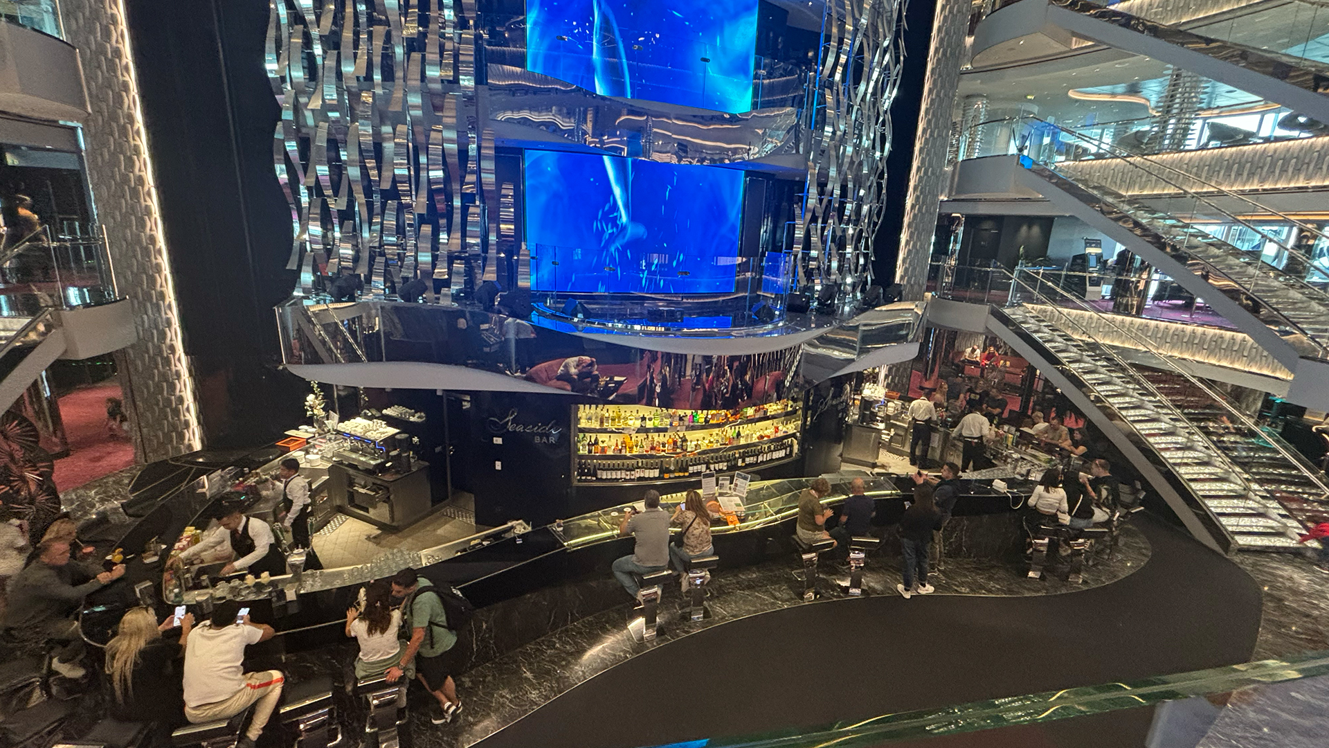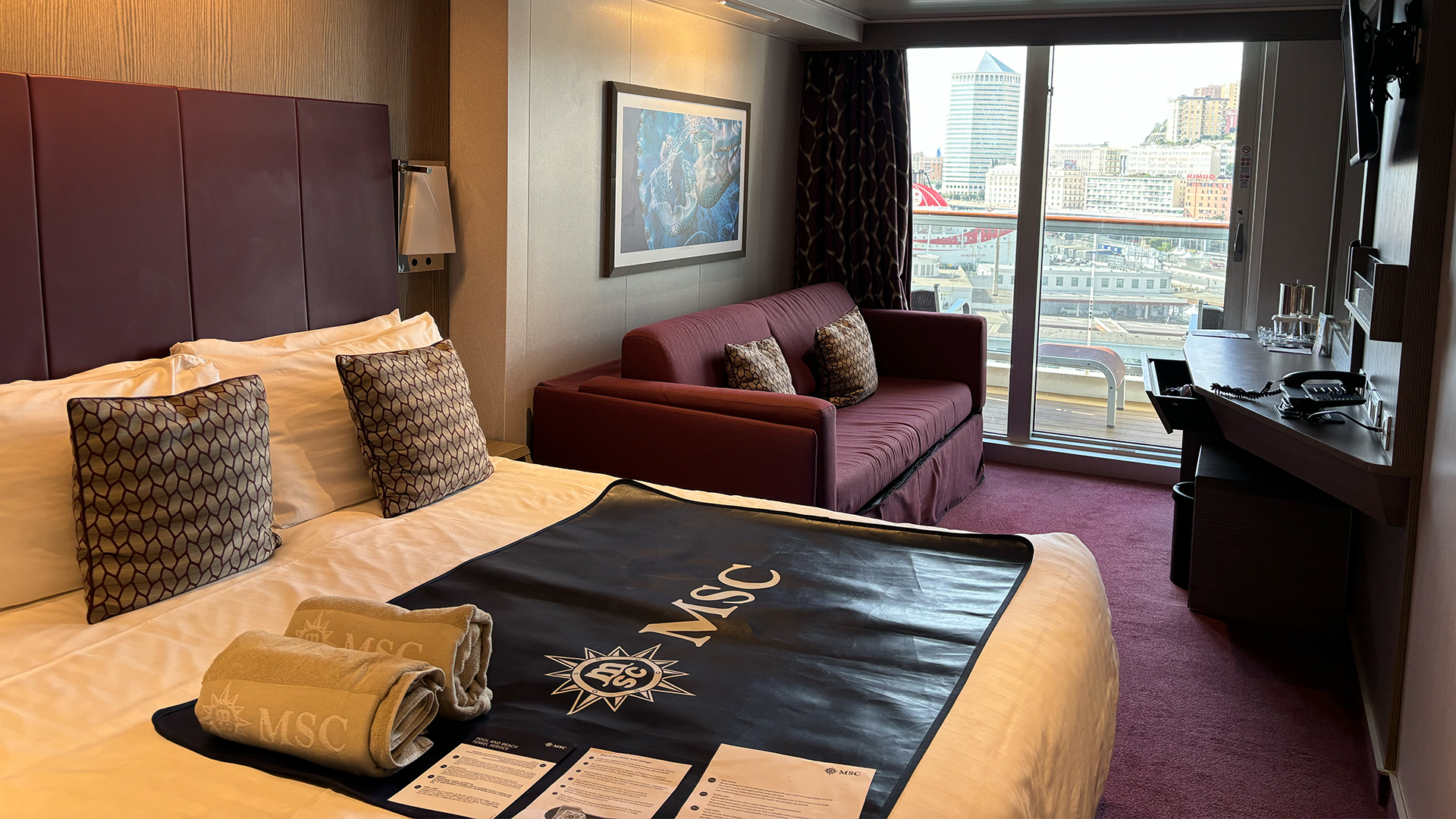 Wir fahren mit dem Auto nach Genua und können es am Hafen super schnell und einfach parkieren. Das Check-in ist noch vor der angegebenen Zeit möglich, was ebenfalls schnell und ohne lange Wartezeiten vonstattengeht. Die Crew und alle Mitarbeitenden sind sehr freundlich und hilfsbereit. Und dann erblickten wir das Schiff. Wow: Die Dimension der MSC Seaside ist kaum vorstellbar. Es glänzt, spiegelt und glitzert überall!