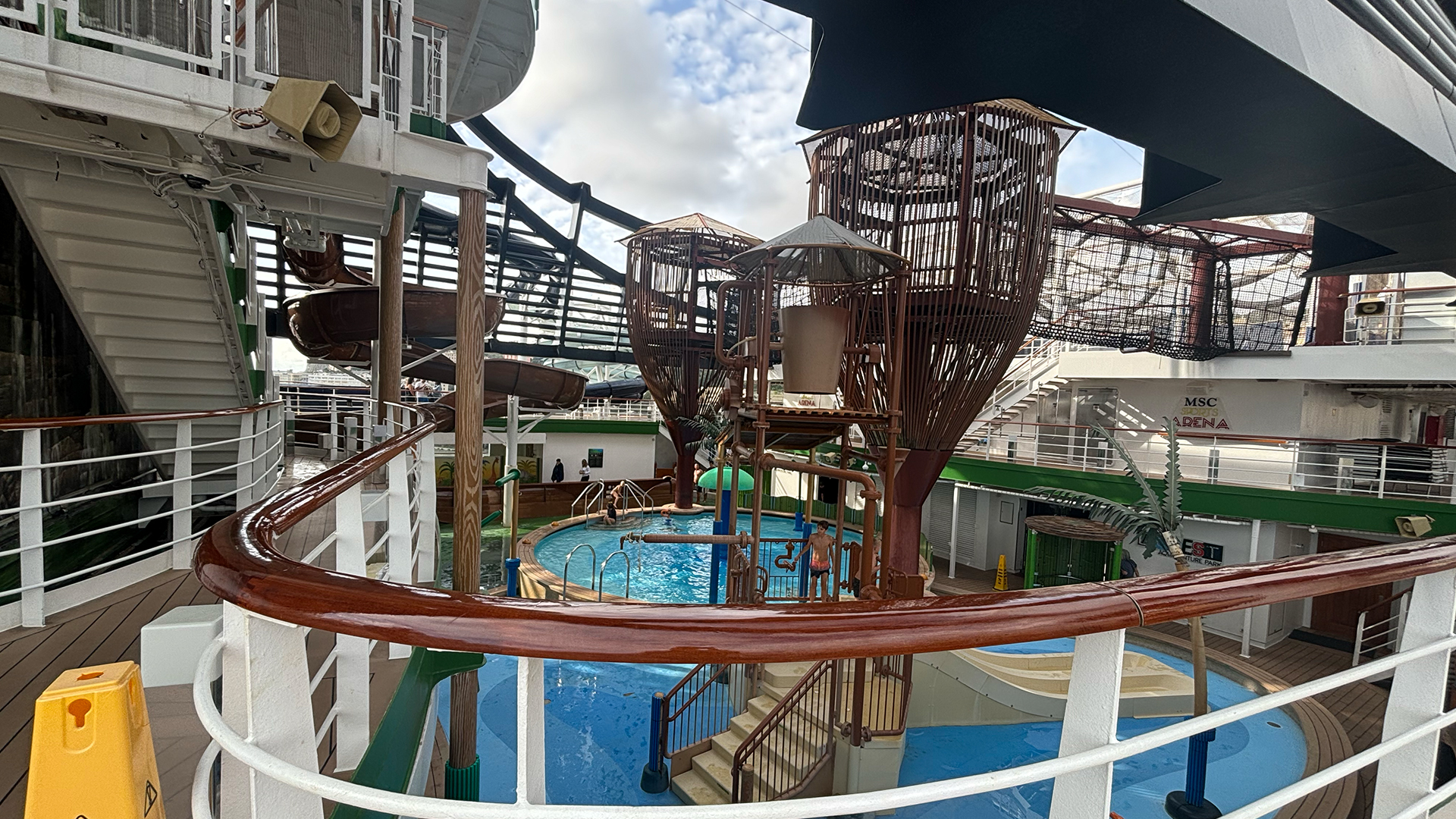 An diesem Morgen gehen wir früh morgens zum Frühstück und danach aufs Deck 19, wo sich meist nicht viele Leute aufhalten. Der Himmel ist anfangs etwas bedeckt, aber es ist warm genug, um draussen zu lesen. Was auf dem Schiff leider nicht so gut funktioniert, ist das „Browse & Stream Kreuzfahrt Paket“ für 84 Euro, welches uns während der gesamten Kreuzfahrt mit Internet versorgen sollte.